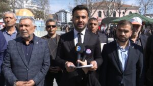 Bu yıl Ramazan ayını İsrail savcılarını neden olduğu açlık ve yokluk içinde karşıladı bugün burada sadece bir coğrafyanın değil insanlığın vicdanını kanatan bir meseleyi konuşmak için toplandık. Filistin halkı yıllardır zulüm baskı ve işgal altında yaşıyor günahsız çocuklar masum siviller gençler ve yaşlılar bombaların gölgesinde hayata tutunmaya çalışıyor. Gazze’de Yaşananlar Sadece Filistinlerin değil Tüm insanlığı meselesidir orada kankan sadece bir milletin değil vicdan sahibi herkesin yüreğini sızlatmaktadır. Bizler tarih boyunca mazlumun yanında duran bir milletin evlatlarıyız. Bugün de Filistinli kardeşlerimizin yanında olmak onların sesi olmak zulme karşı dimdik durmak bizim en büyük sorumluluğumuzdur. Cumhurbaşkanımız Sayın Recep Tayyip Erdoğan’ın liderliğinde Türkiye olarak her zaman Filistin davasının savunucusu olduk, olmaya da devam edeceğiz. Diplomasiden insani yardımda her alanda Filistinli kardeşlerimizin yanında olmaya devam edeceğiz. Çünkü biz inanıyoruz ki zulme Sessiz kalmak zalime destek olmaktır.” Dedi.